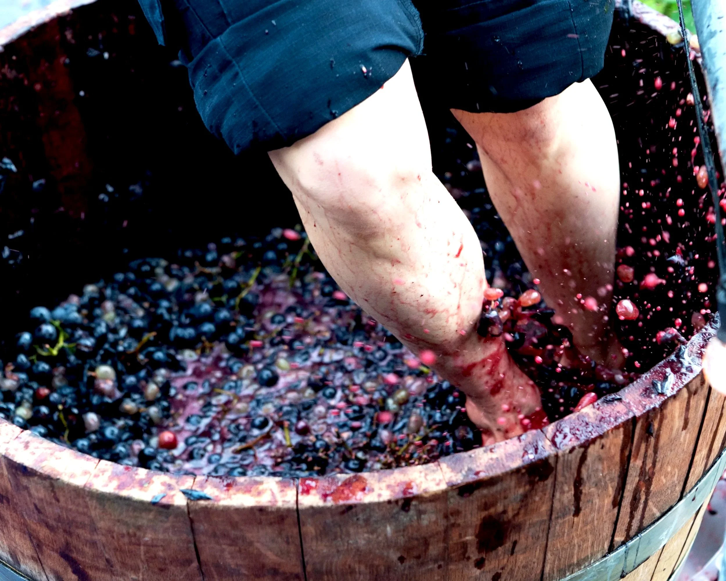 Cheer on three teams in a lively grape-stomping relay with old-fashioned barrel crushing with nothing but their feet!