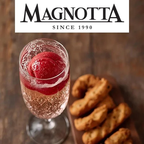 Experience Sparkling Vidal Icewine paired with a chocolate feuilletine tart filled with dark chocolate ganache and topped with silky vanilla cream and raspberry. Golden sweetness and lively effervescence lift the cocoa richness for a luxurious finish.